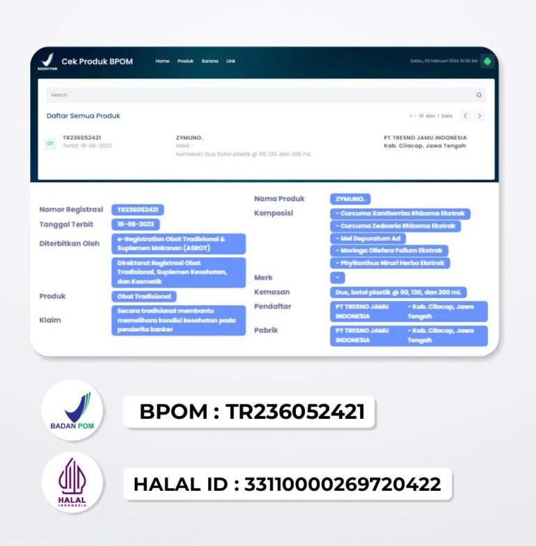 Zymuno Sudah Tersertifikasi BPOM & MUI